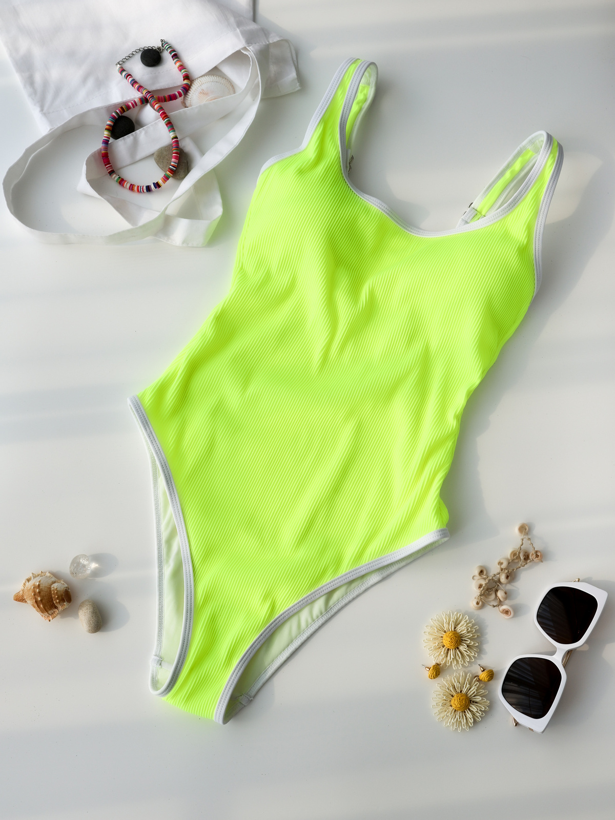 Стильный купальник ANUTINA в рубчик подчёркивает фигуру и красиво садится за счёт эластичной ткани и регулируемых бретелей. Контрастная окантовка делает модель выразительной, а высокий вырез визуально вытягивает ноги. Материал быстро сохнет и устойчив к выгоранию — отличный вариант для пляжа, бассейна и отдыха.