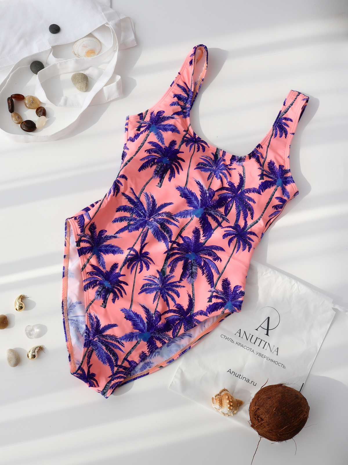 Слитный купальник ANUTINA создаёт аккуратный, стройный силуэт благодаря мягкому материалу и продуманному крою. Высокий вырез визуально удлиняет ноги, а плотная ткань красиво держит форму в воде и на солнце.
