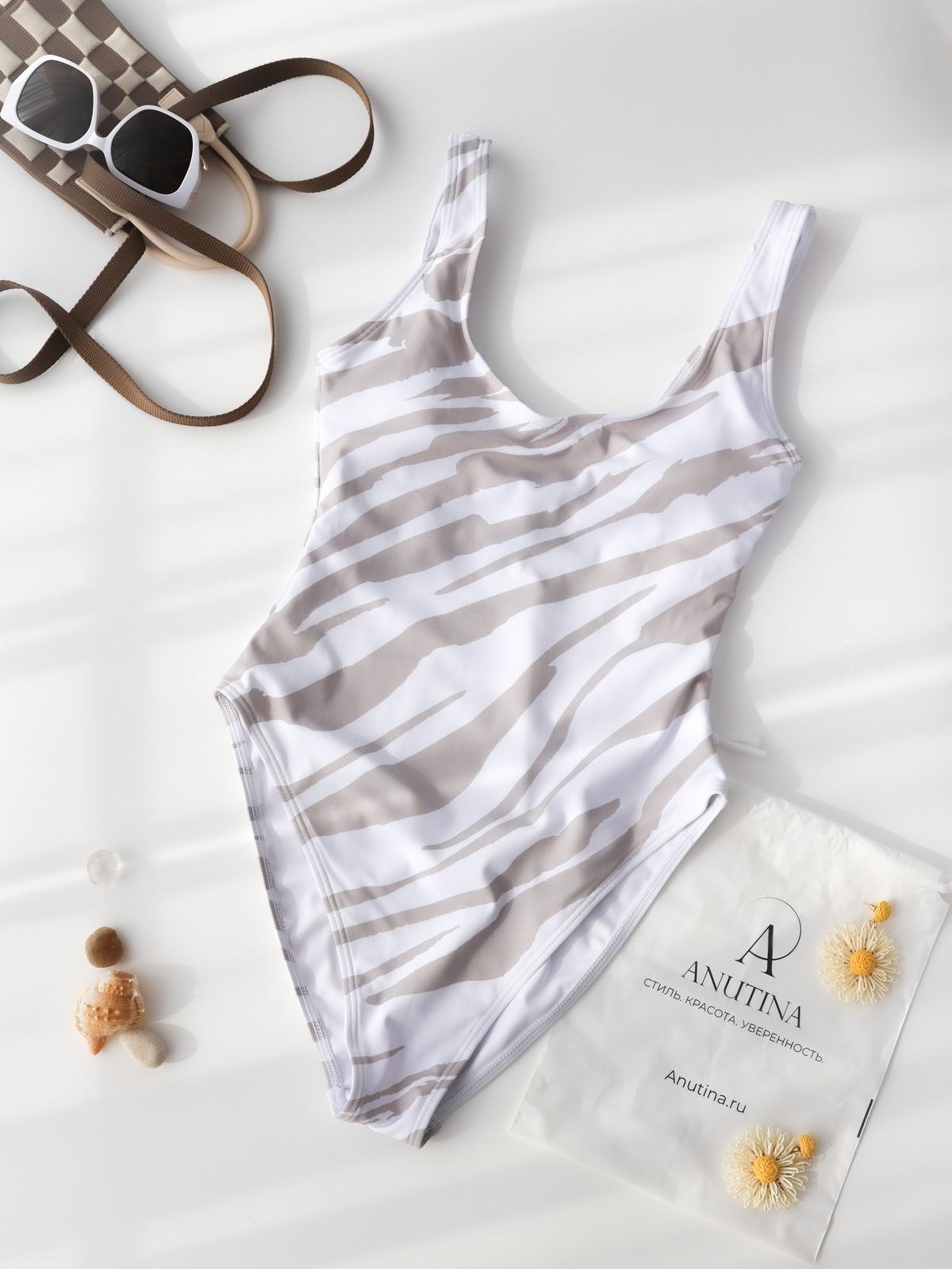 Яркий принт зебра делает образ выразительным, оставаясь при этом стильным и современным. Плотная эластичная ткань не просвечивает, быстро сохнет и долго сохраняет яркость принта. Идеальный выбор для пляжа, бассейна и отдыха