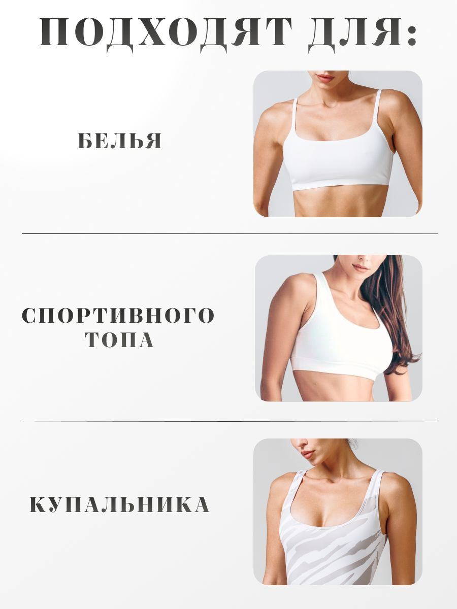 Перфорированная поверхность обеспечивает комфортную вентиляцию даже в жаркую погоду, а гладкий край не выделяется под тонкими тканями. Подходят для купальников, спортивных топов и повседневного белья.
